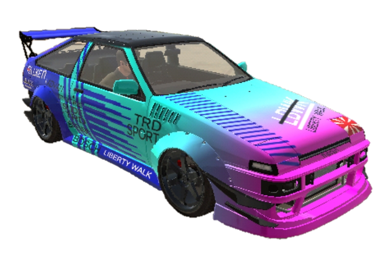 TOYOTA AE86 FALKEN風格原創粉藍漸層塗裝 甩尾車塗裝 飛隼輪胎